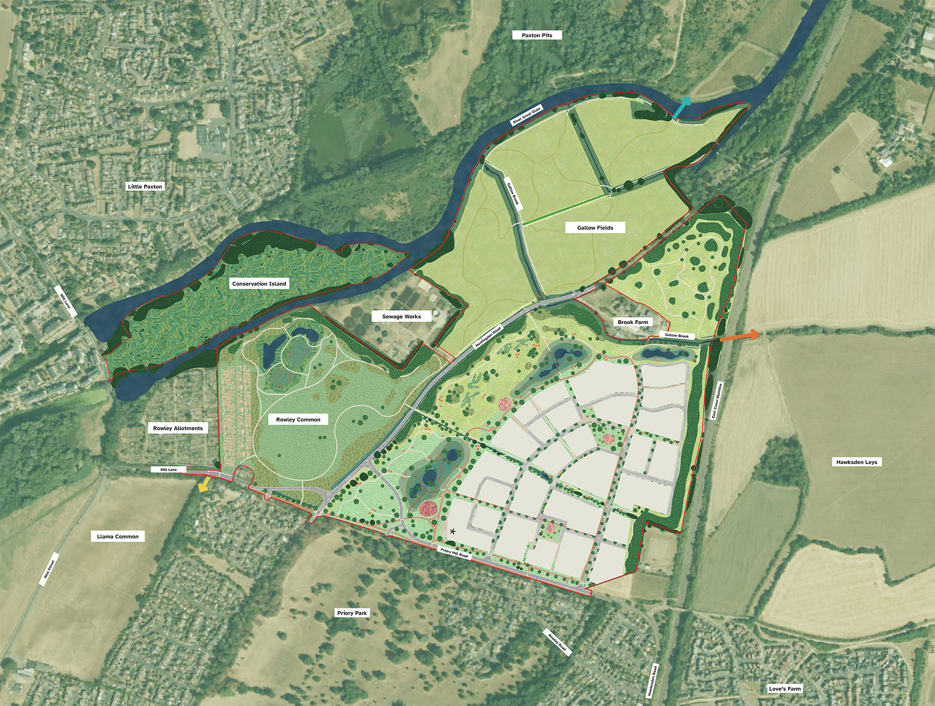 • Potential river crossing to Paxton Pits, with space being safeguarded for a potential bridge, creating a direct link to Paxton Pits and the Great Ouse walking trail.